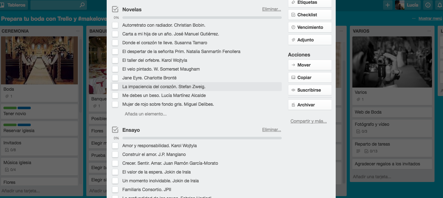 captura-de-pantalla-2016-10-19-a-las-19-28-04 Previous Next Publicado 19 octubre, 2016 en 1412 × 631 en 5 recursos para organizar tu boda Vista de dos checklists en una misma tarjeta Descubre más desde #MakeLoveHappen Suscríbete y recibe las últimas entradas en tu correo electrónico. Escribe tu correo electrónico… Suscribirse El amor tiende a expandirse. Si te ha gustado este post, ¡compártelo! Haz clic para compartir en WhatsApp (Se abre en una ventana nueva) WhatsApp Haz clic para compartir en X (Se abre en una ventana nueva) X Haz clic para compartir en LinkedIn (Se abre en una ventana nueva) LinkedIn Haz clic para compartir en Facebook (Se abre en una ventana nueva) Facebook Haz clic para enviar un enlace por correo electrónico a un amigo (Se abre en una ventana nueva) Correo electrónico Haz clic para compartir en Telegram (Se abre en una ventana nueva) Telegram Me gusta Cargando...